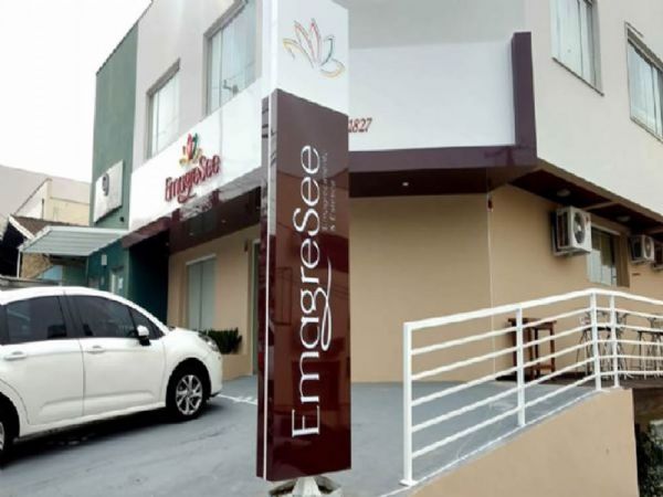 Totem de Acm Vazado Com Iluminação Em Led. clínica Emagrasse - Emagrecimento & Estética.
