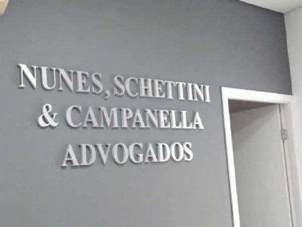 Letra Caixa de Pvc Expandido Com Acm de Aço Inox Escovado Por Cima. cliente Nunes, Schettini & Campanella Advogados.